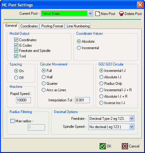 This example shows the standard post for Haas and Fanuc type controllers. There is really only a minor change to the user the rest is handled by new logic. If you set up your post like this you will see how it works. I have also included some posts to download.