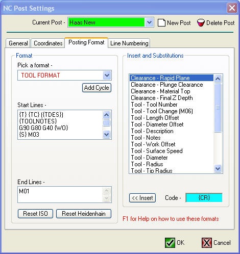 When entering the prefix code for example the {TC} variable in the prefix you entered M05 M09 G53 it would post as one line.
